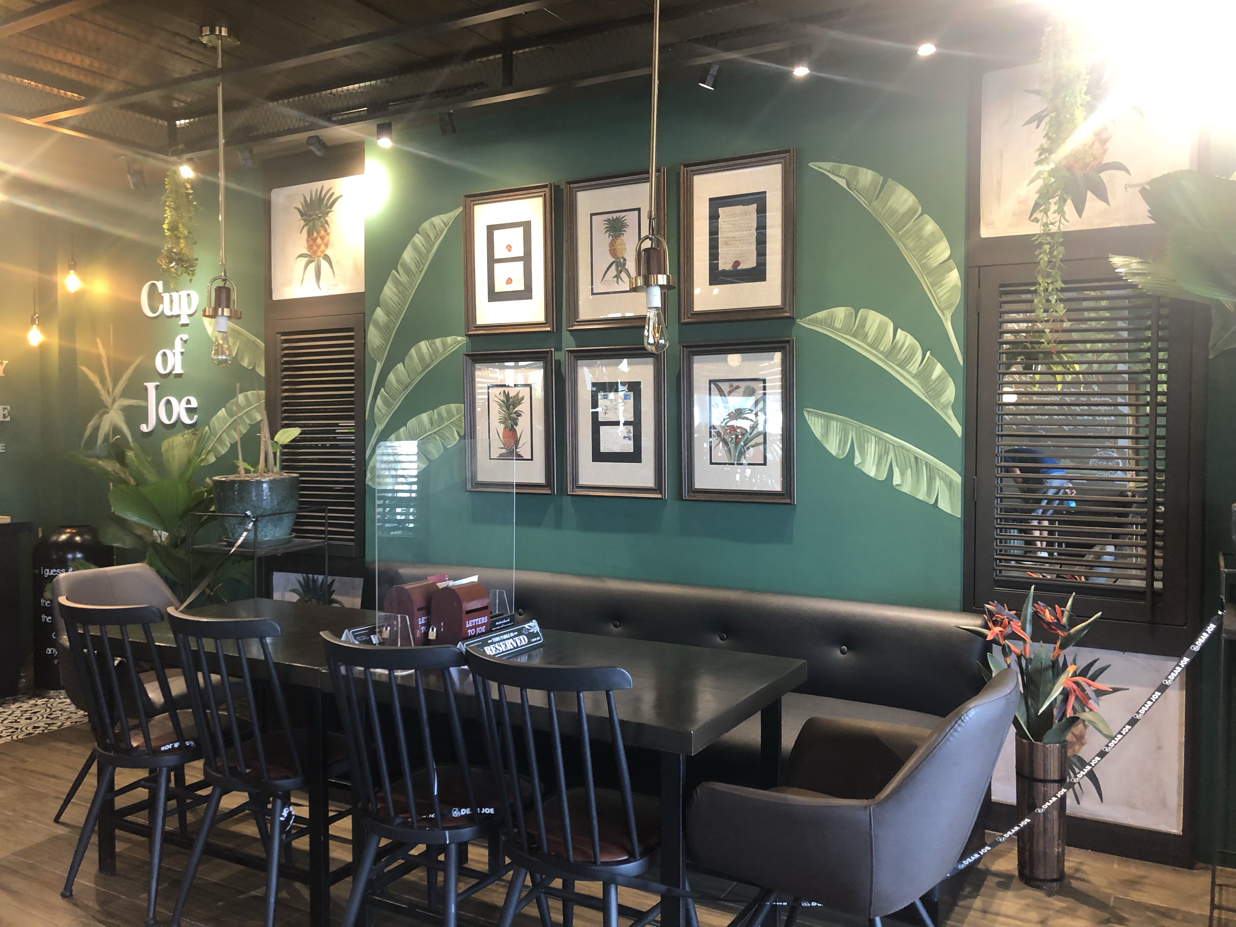 Dear Joe’s Coffee & Juice theme is somewhat American-Retro style with earthly tones and lush greens from the decorative plants which covered every corner, thus adding a tropical-cozy vibe. There are lots of murals that you can see on the walls. Various seats are available, from